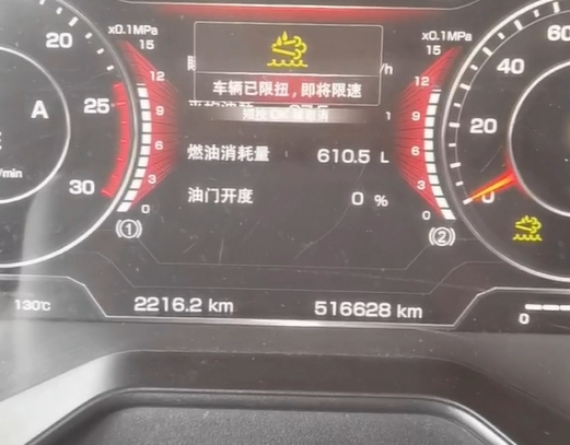 中午12点,车上的故障灯亮起。离最近的服务站来回就要2小时,迟师傅想着“先跑着”——结果下午5点多车辆限速限扭,完全没动力。